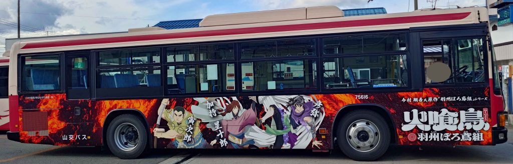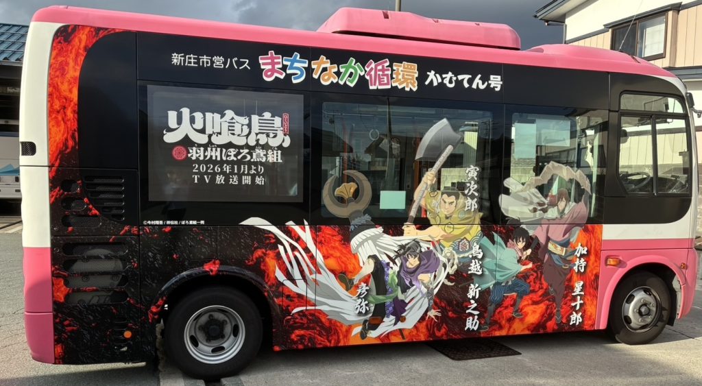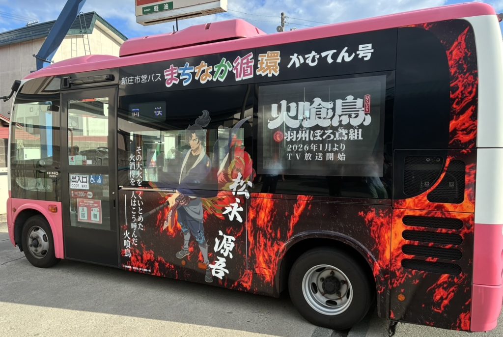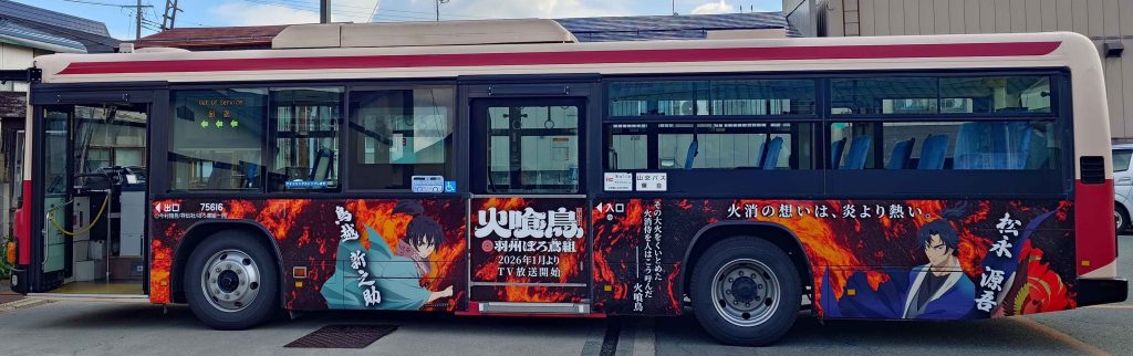 山形県新庄市内にて、TVアニメ「火喰鳥」 の特別ラッピングバスの運行が決定いたしました。