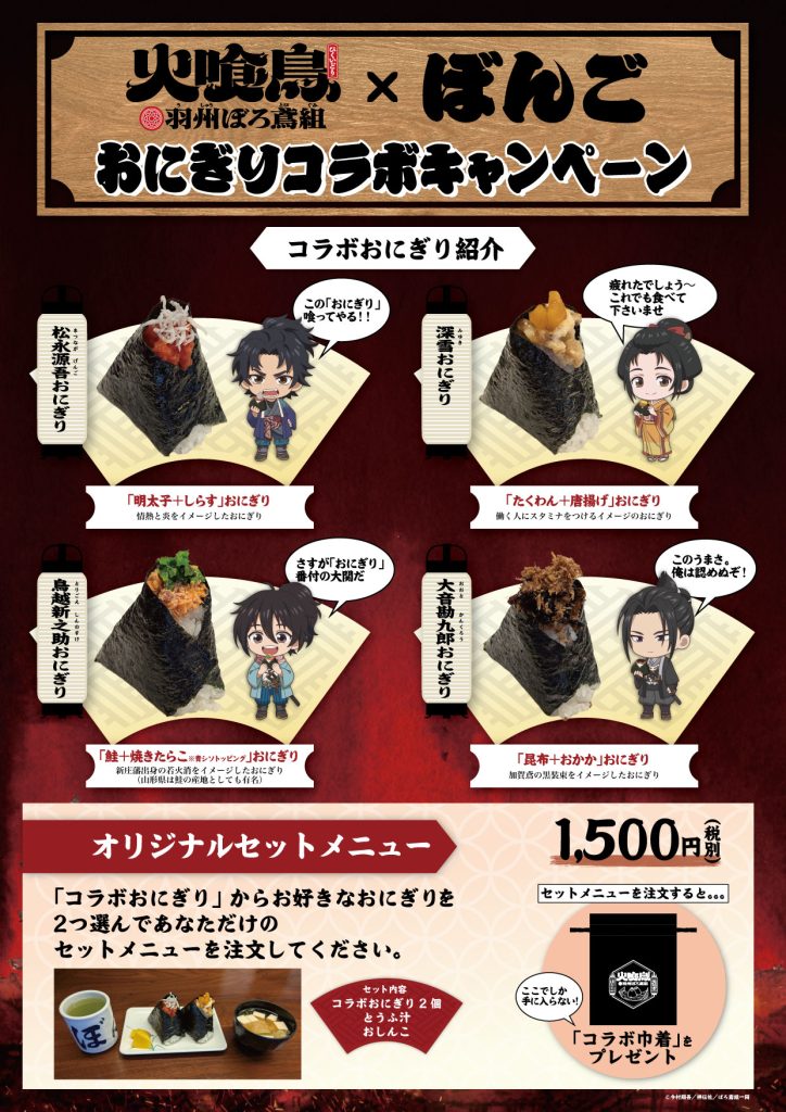 ▼「火喰鳥」×「おにぎり ぼんご」コラボキャンペーン詳細